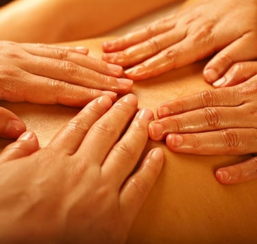 1. Sincronización: Los dos terapeutas trabajan al mismo tiempo, coordinando sus movimientos para crear una experiencia fluida y armoniosa.